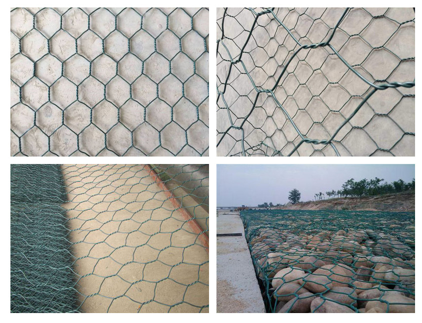 Gabion protective mesh also called hexagonal wire netting is a group of galvanized or PVC coated metal wire netting. It comes in various forms as gabion box, river Reno mattress as we as gabion sacks and decorative gabion wire mesh. Gabions are modular building bloks formed of wire mesh and filled on site with rock, stone or crushed concrete. They are filled on the premises, often with locally available material and are an effective and relatively inexpensive capital cost. Because they are flexible and porous they can absorb some wave and wind energy, consequently reducing the erosion problems associated with impermeable sea defences such as concrete seawalls. Gabion is a particularly flexible block construction used for slope stability and erosion protection in construction.